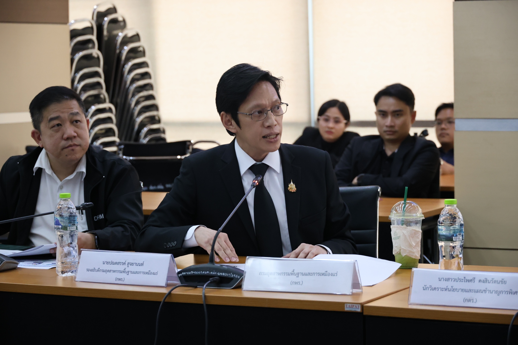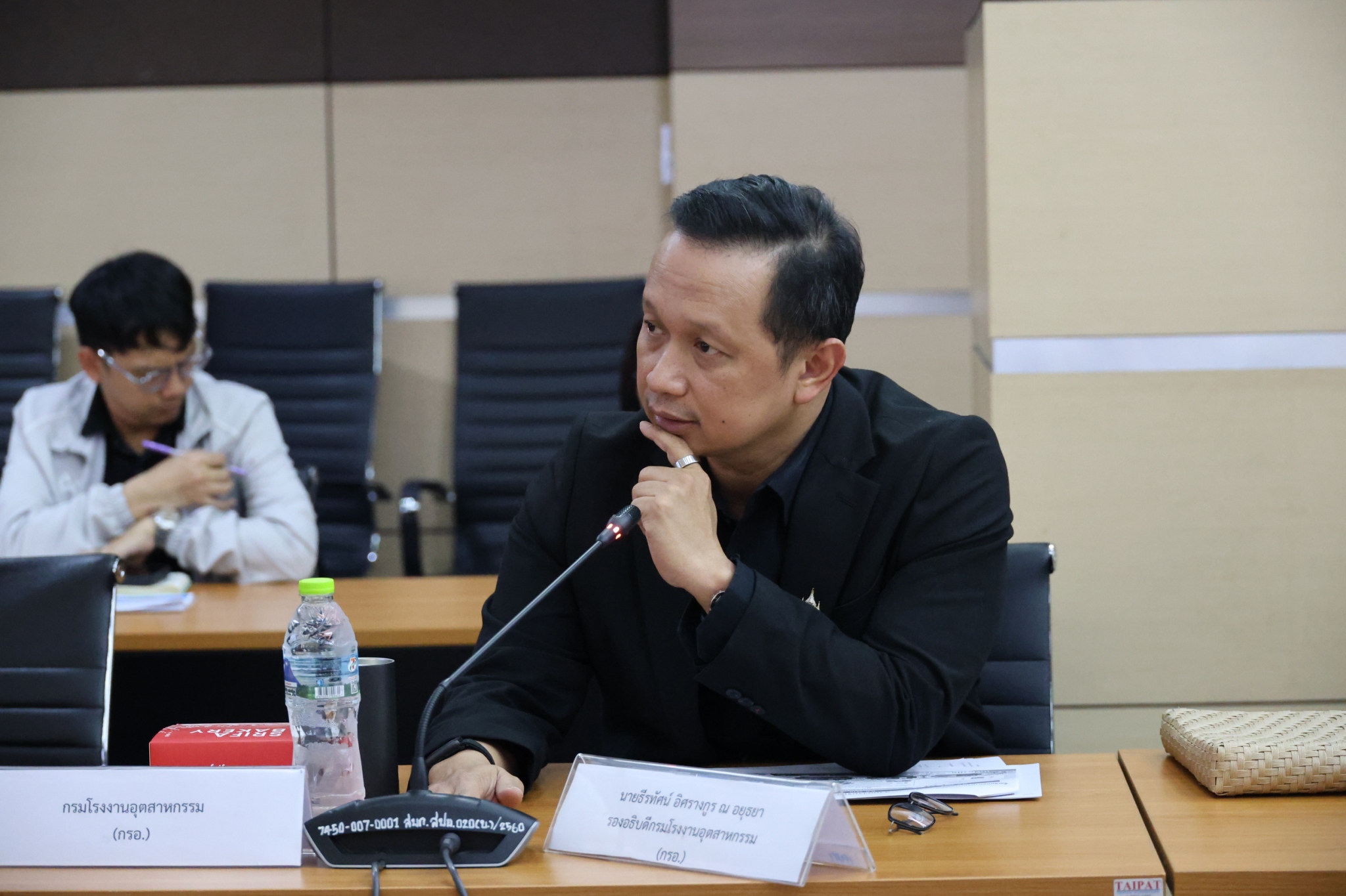 โดยมี นายธีรทัศน์ อิศรางกูร ณ อยุธยา นางสาวอารยา ไสลเพชร รองอธิบดีกรมโรงงานอุตสาหกรรม (กรอ.) นายสุรพล ปลื้มใจรองอธิบดีกรมส่งเสริมอุตสาหกรรม (กสอ.) นายปณตสรรค์ สูจยานนท์ รองอธิบดีกรมอุตสาหกรรมพื้นฐานและการเหมืองแร่ (กพร.) นางพงษ์ศิริ วรรณศรี รองเลขาธิการสำนักงานมาตรฐานผลิตภัณฑ์อุตสาหกรรม (สมอ.) นางสาวณิรดา วิสุทธิชาติธาดา รองผู้อำนวยการสำนักงานเศรษฐกิจอุตสาหกรรม (สศอ.) นางสาวกุลนิษฐ์ ฉายวิเชียร นักวิชาการอุตสาหกรรมชำนาญการพิเศษ (สอน.) นายธนวัฒน์ ไทยแก้ว ผู้อำนวยการกองยุทธศาสตร์และแผนงาน (กยผ.) นายอาทิตย์ อิงคุทานนท์ ผู้อำนวยการกองตรวจราชการ (กตร.) และเจ้าหน้าที่ผู้ที่เกี่ยวข้องแต่ละหน่วยงาน เข้าร่วมการประชุมดังกล่าว เวลา 09.30 น. เป็นต้นไป ณ ห้องประชุม อก.1 อาคาร สปอ.